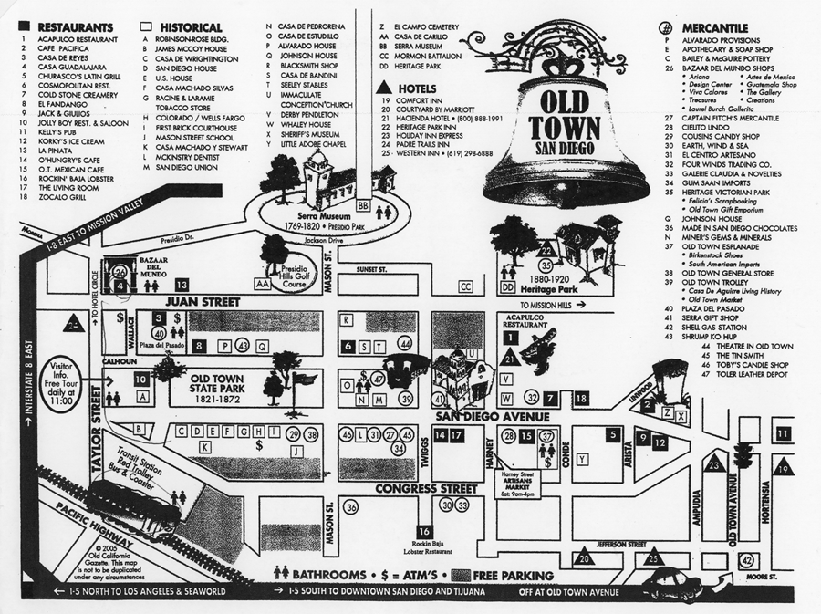 Old Town is the original San Diego settlement and town. Now, it's the best place to get Mexican food in San Diego (as far as I'm concerned). My favorite place there is Casa de Guadalajara. There are about a dozen restaurants there. Most importantly, aside from the restaurants at Town & Country and at the Food Court in the Mall, Old Town has the closest (good) restaurants.